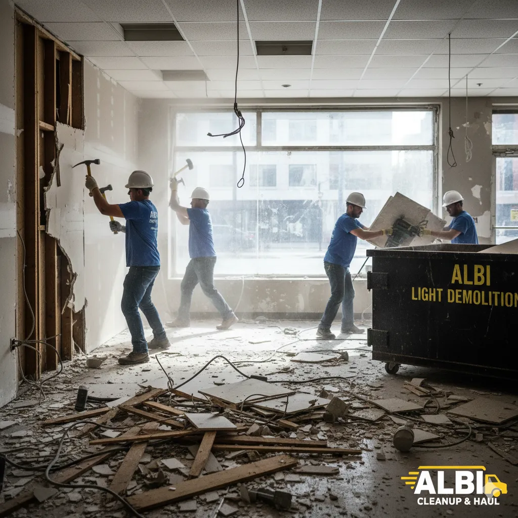 Light Demolition is a quick, clean way to tear out unwanted structures or materials without dealing with the headache yourself. Albi Cleanup and Haul handles small demolition services like interior demolition service work, demo and haul away, and full demolition and hauling so you don’t have debris sitting around afterward. From removing old wood, fixtures, or broken-down structures, we do the tear-out and the cleanup in one smooth job.
